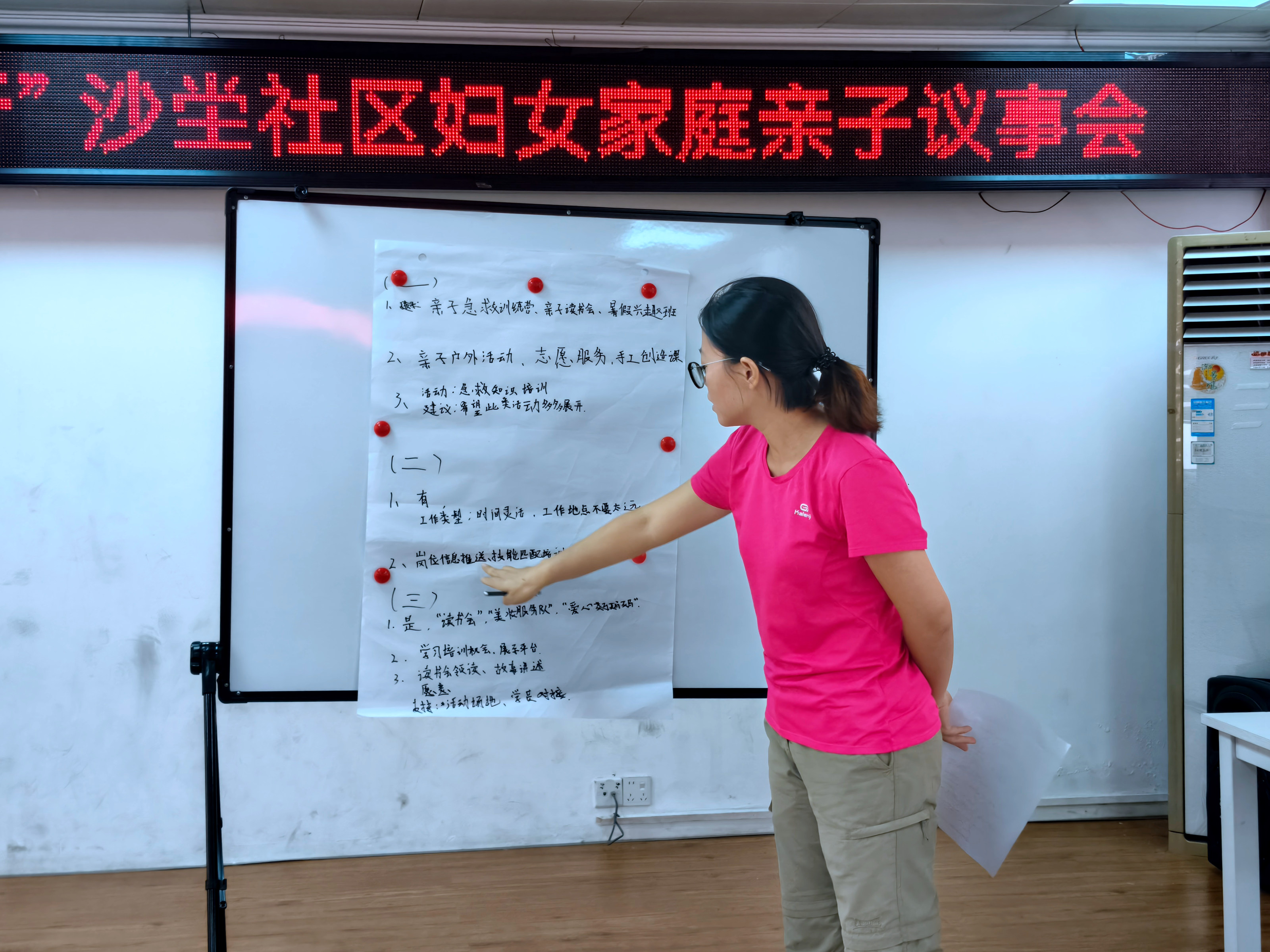 沙坣社区党群服务中心举办“巾帼力量・亲子同行”妇女家庭亲子议事会,社区家庭亲子积极参与,通过互动交流为社区妇女儿童服务建言献策。