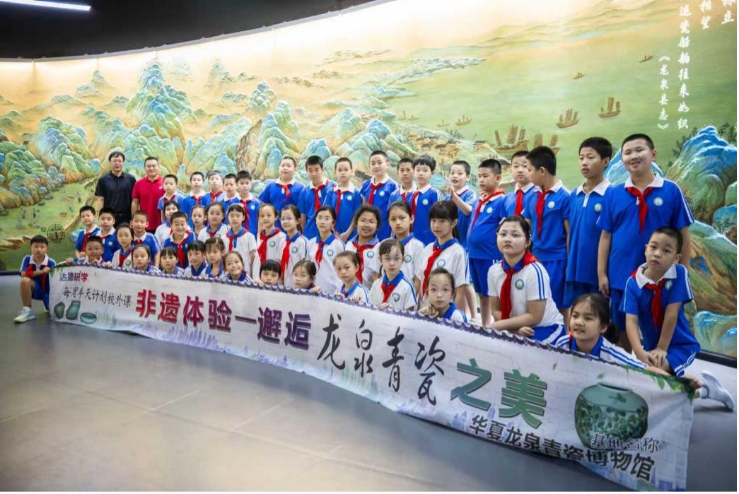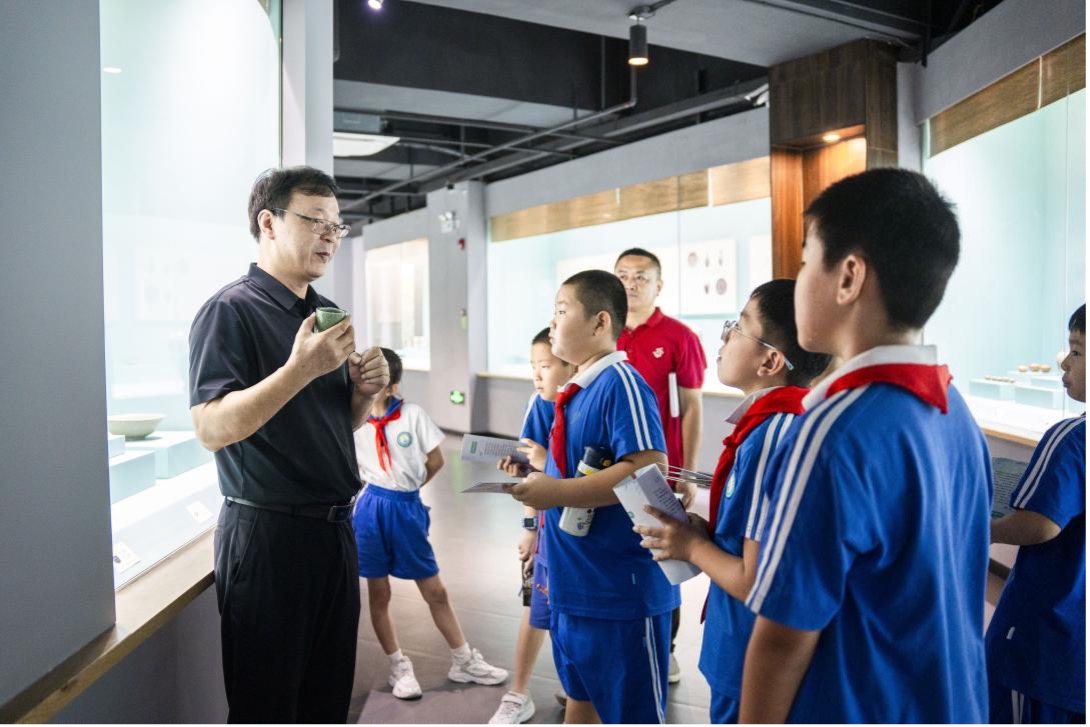 这次活动并非简单地参观“打卡”,而是双向定制的教学联动。“我们提前两个月和博物馆共同打磨课程,把青瓷文化与小学中华优秀传统文化课标精准对接。”孝德学校项目负责人张继林介绍,华夏龙泉博物馆亮出独家资源——广东省首家龙泉青瓷专题馆“龙行天下”展览。从“如翠似玉”的古代真品到“冲出国门”的国礼瓷,5个展区成了天然历史“教材”。