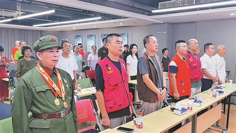 观湖街道组织退役军人观看九三阅兵盛况。