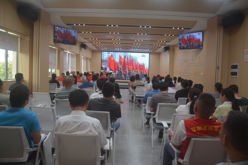 9月3日上午,大鹏新区土洋社区工作站工作人员在3楼会议室一同观看纪念中国人民抗日战争暨世界反法西斯战争胜利80周年大会的直播。