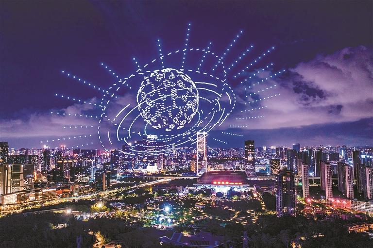 文化赋能让中国科技更有“温度”。2025年4月,全球近4000万粉丝的美国顶流网红“甲亢哥”在深圳人才公园偶遇大漠大的1500架无人机表演——蓝色巨龙盘旋天际,大鹏、深圳地标等图案动态呈现,“甲亢哥”直呼“Crazy!这非常深圳”。这场表演通过直播在外网引发刷屏,外国网友感叹“中国科技已站在未来”,媒体评价其“用空中艺术打破西方刻板叙事”。