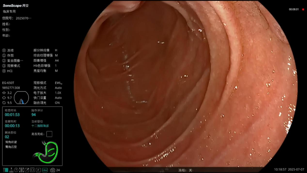 据了解,开立医疗自主研发的智慧内镜平台iEndo采用了业内首创的独立GPU多核异构智慧影像架构,拥有强大的并行计算能力,推出肠部质控、肠息肉识别、退镜速度监测、肠道清洁度评分、胃部盲区监测等AI功能,在质控、教学、提高检出率方面发挥了作用,能显著提升消化道早期病变的检出率,帮助医生更精准、高效地完成检查,将极大提升消化道疾病领域的诊断水平。