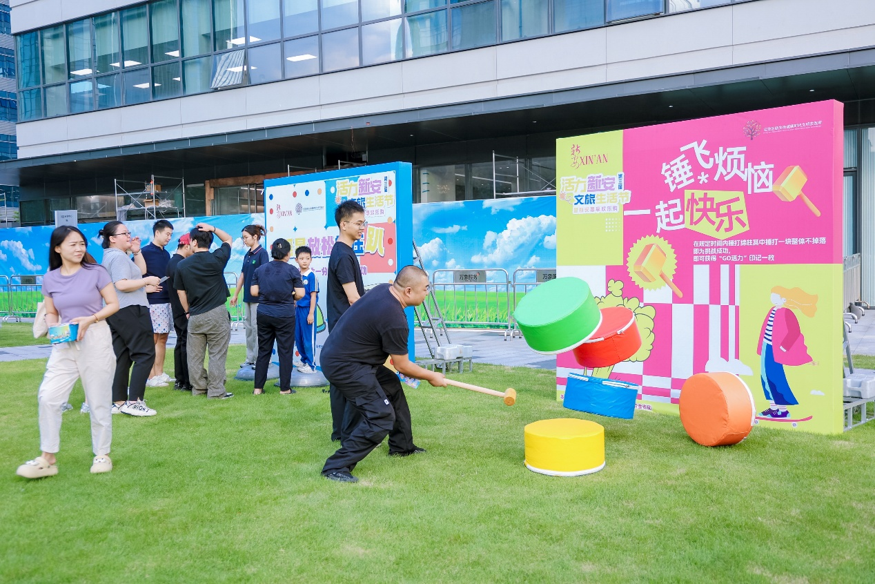 “GO生活-美好生活集市-新安惠享欢乐购”区域更是人头攒动。新安街道精心筹备,联合辖区各大商圈发放5000万元消费券,有效激发消费热情,吸引众多市民前来“淘宝”。