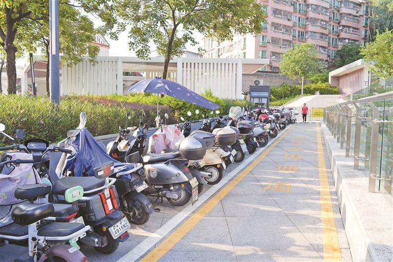▲松元厦地铁站附近的电动自行车摆放规范有序。