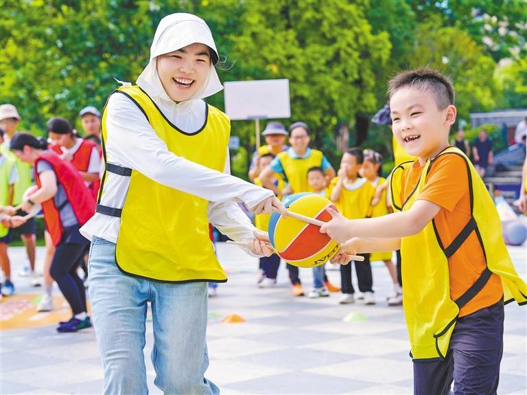 活动现场没有激烈的竞技对抗,只有充满趣味的亲子合作游戏。从默契十足的接力挑战到考验配合的互动任务,家长与孩子手拉手、齐上阵。不少家长暂时放下工作的忙碌,全身心投入游戏,跟着孩子一起奔跑、跳跃,脸上满是久违的轻松笑容。