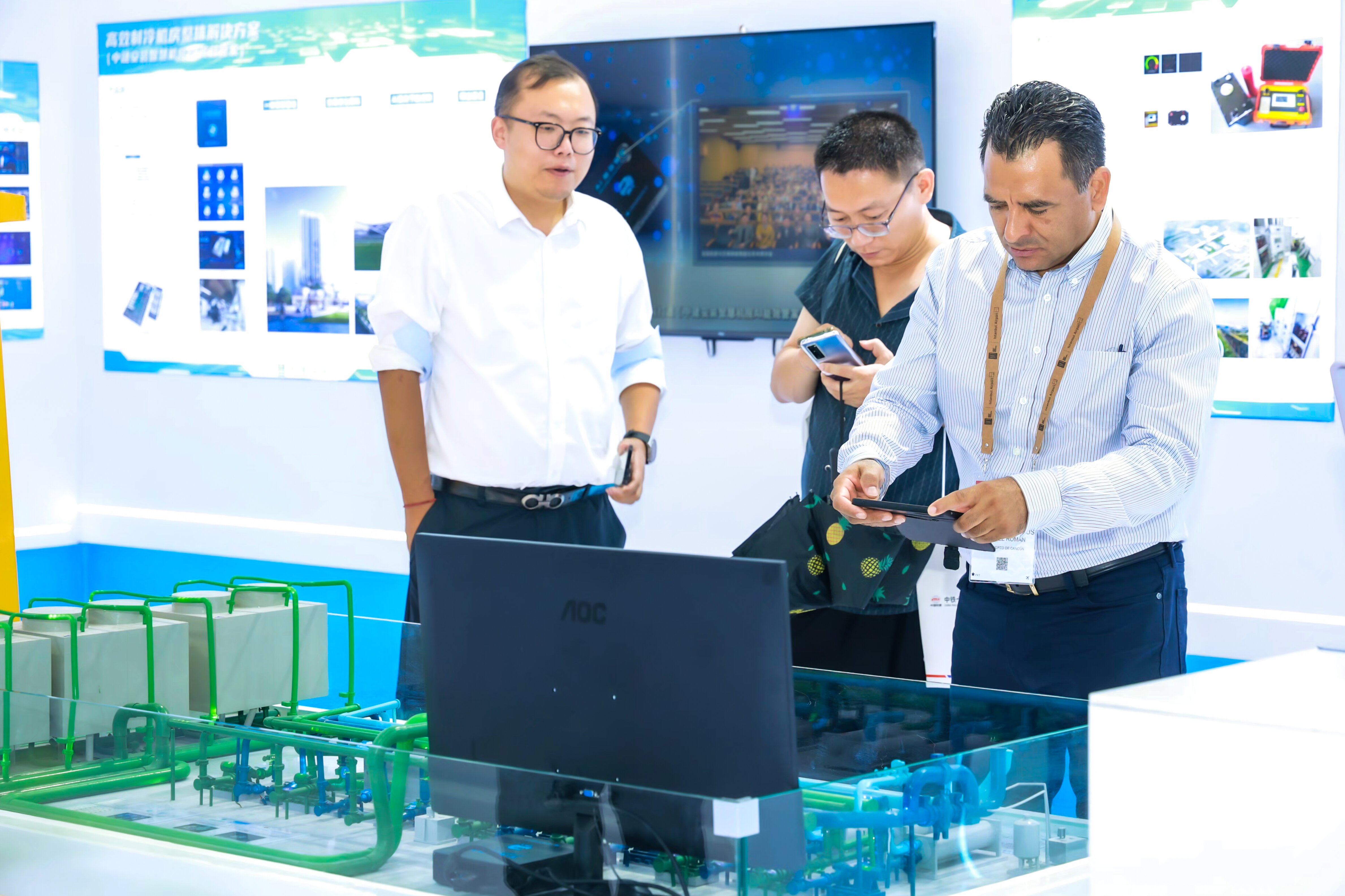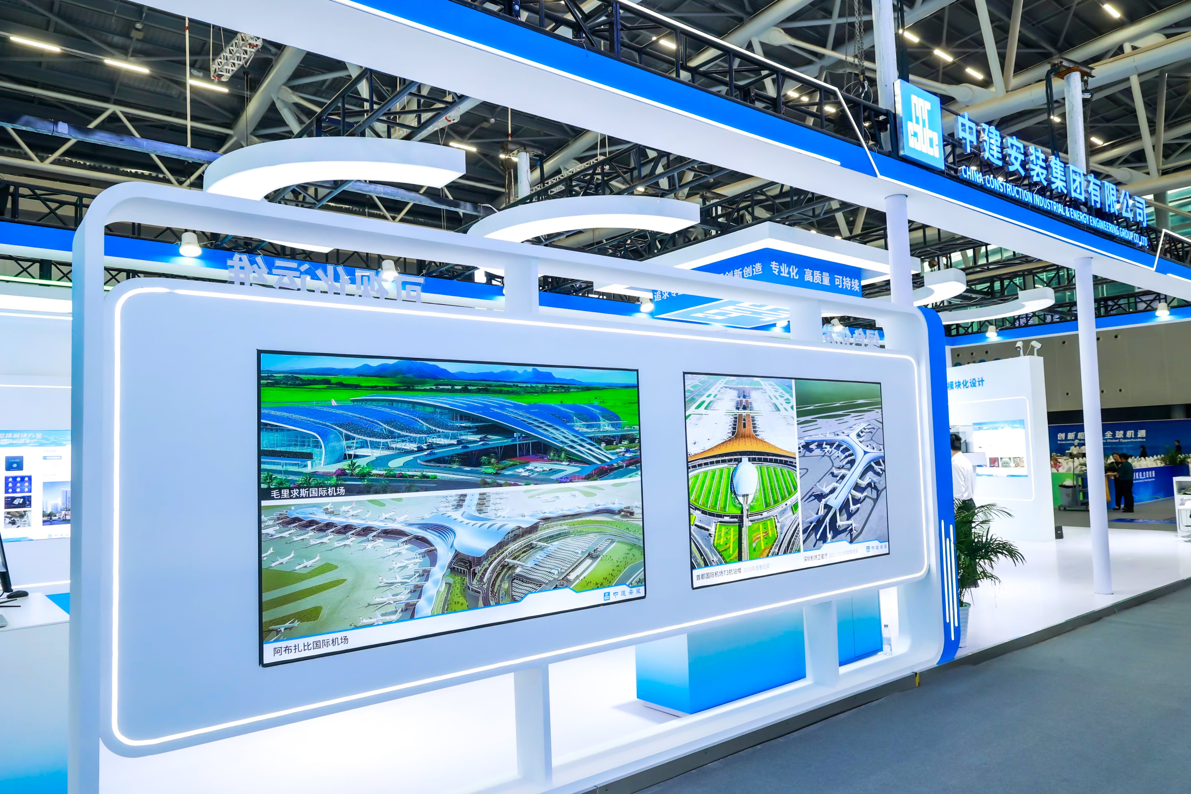 博览会现场,各大展区集中展示新产品、新技术。在民航工程技术与新质生产力展区,中建安装集团有限公司展示的模块化设计、自动化加工、智能化建造、平台化管理、可视化运维、绿色低碳等六大板块的技术应用和成果,得到广泛关注和行业认可。