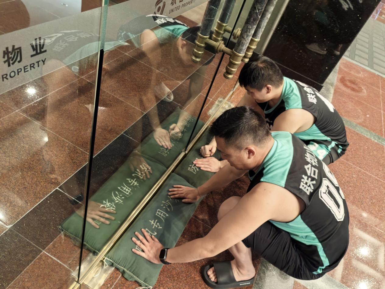 大族物业准备防汛物资,24小时关注地下车库等重点区域,确保小区安全度汛。