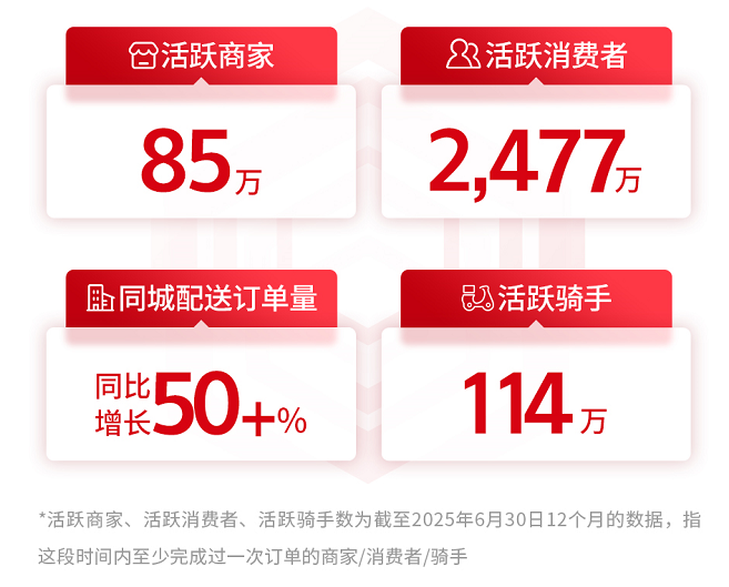 2025年上半年,因为商户频繁开展营销活动,带动订单快速增长,而顺丰同城的弹性网络更能确保在这些特殊情况下的服务质量和稳定性,节假日和恶劣天气下时效达成率波动不超过3个百分点,时效达成率约为95%,3公里以内订单的平均配送时长为23分钟。