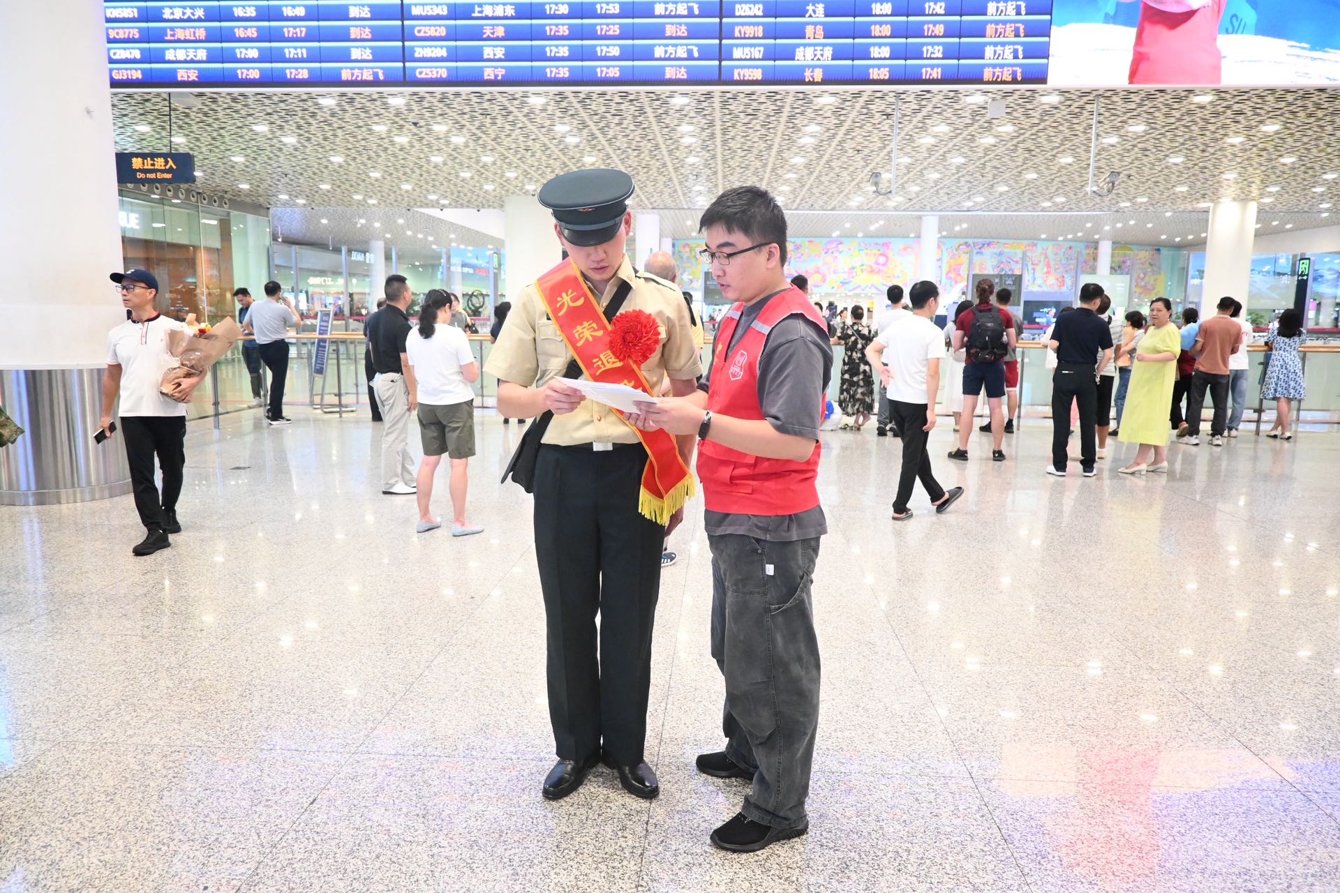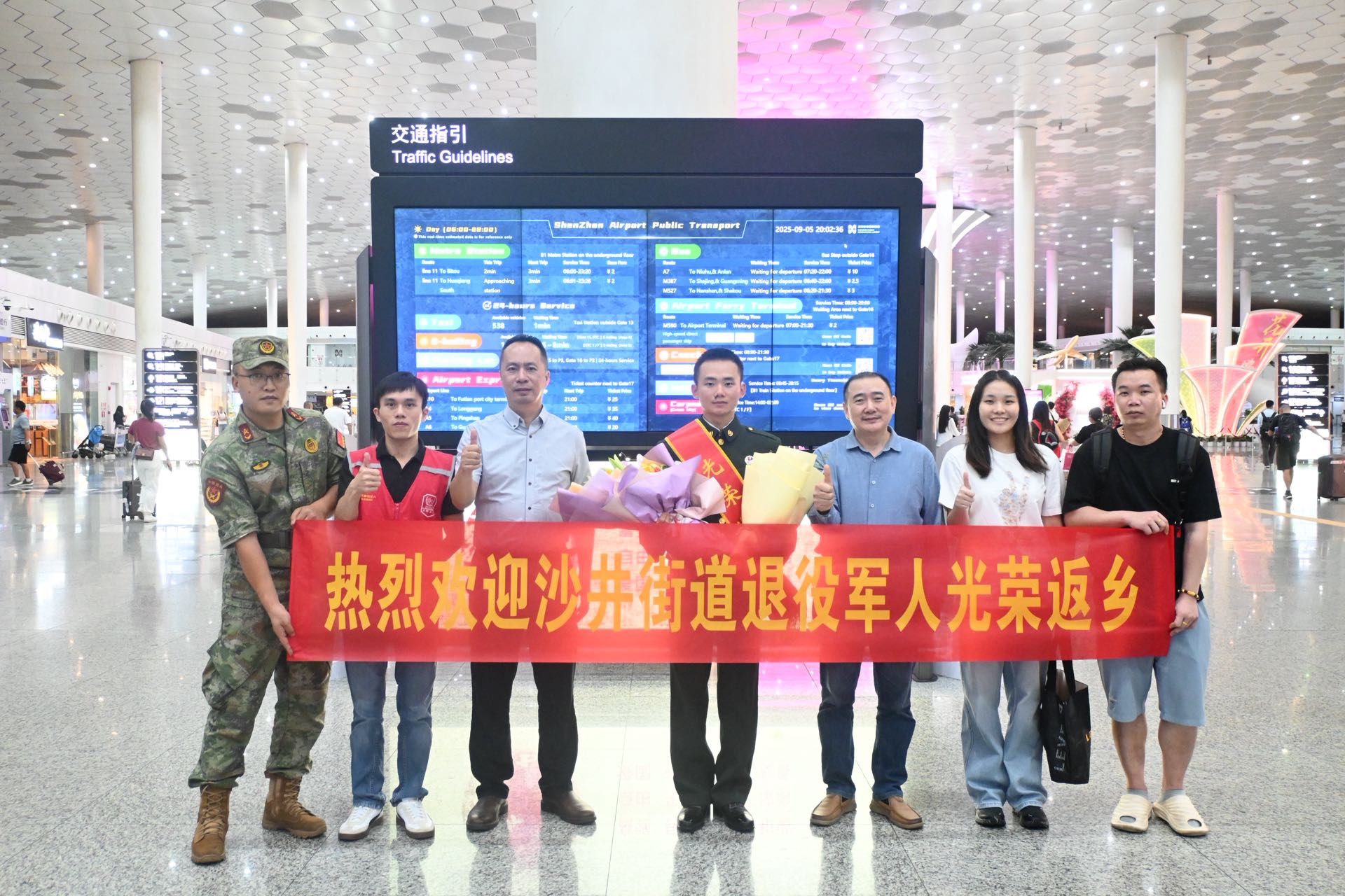 昔日从军报国,今朝荣归故里。为营造浓厚的“参军光荣、退役荣光”社会尊崇氛围,日前,沙井街道退役军人服务站联合街道人民武装部在深圳宝安国际机场为秋季退役士兵举行了简约而庄重的欢迎仪式,致敬他们圆满完成国防任务、光荣返乡。