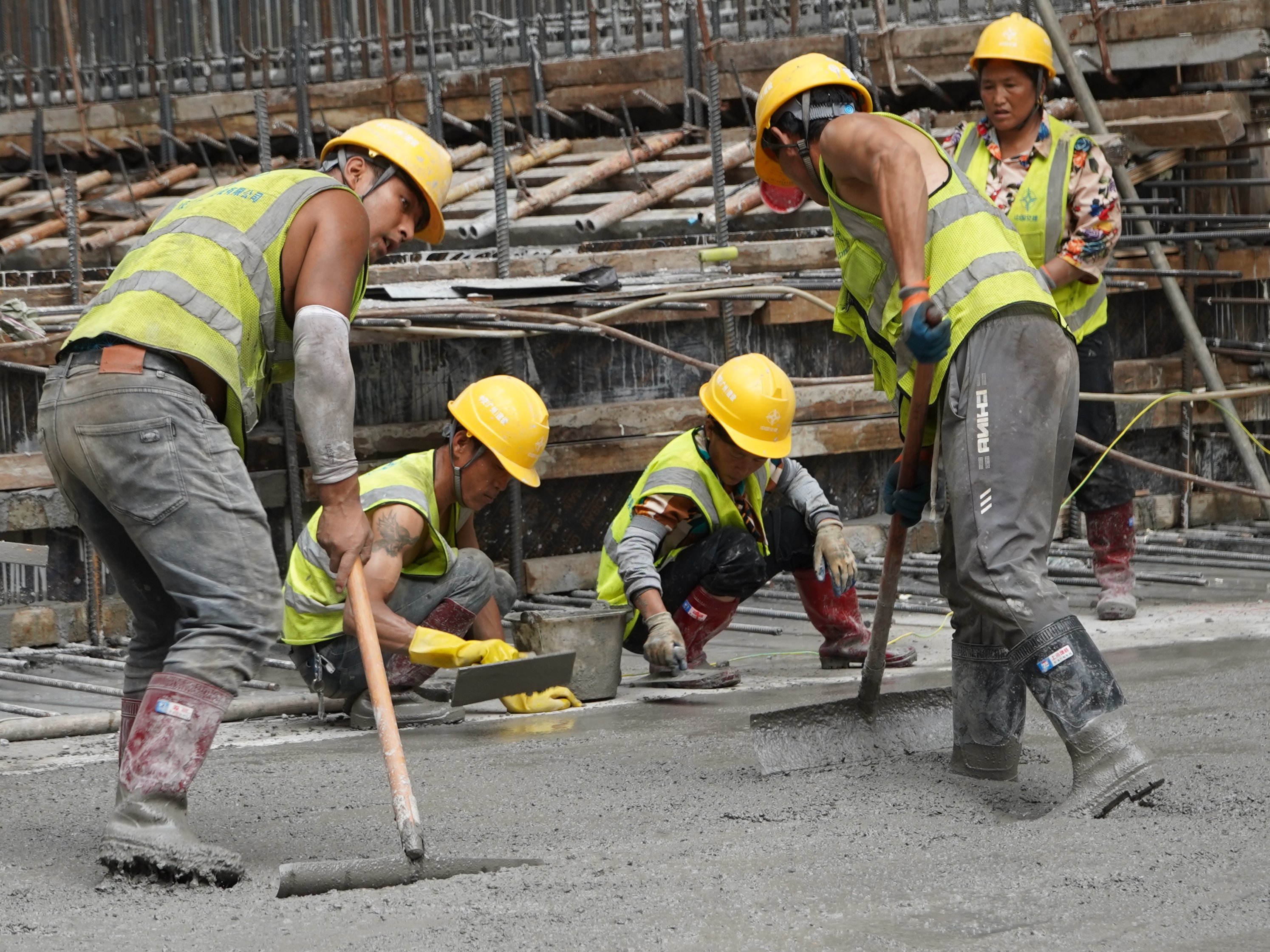 为确保浇筑作业顺利推进,项目调整施工计划并优化施工方案,针对钢筋绑扎、预埋件及模板安装等关键工序从严把控施工质量,精心统筹混凝土供应与泵车作业调度,保障底板顺利浇筑。同时,针对高温天气及时为施工人员发放防暑降温物资,切实保障作业人员身体健康与作业安全,并全面落实各项安全管理措施,保障施工过程中安全生产,为项目筑牢安全基础。