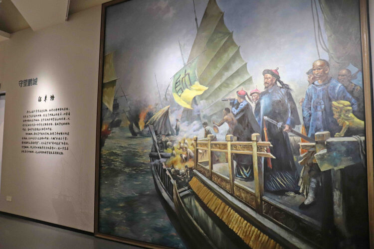 展馆里一幅近4米的巨幅油画也非常引人关注,这幅油画是针对该博物馆量身定制的《南海平盗》,以大鹏所城人士刘起龙将军在广东水师任职期间经历的最大规模战斗——剿灭南海群盗为创作主题,“刘起龙在道光六年(1826年)被提拔为福建水师提督,正是因为此战役的出色表现。”大鹏古城博物馆负责人胡勇告诉记者。