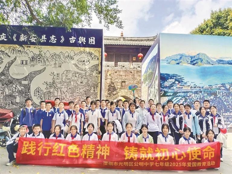 公明中学举行红色研学实践活动。