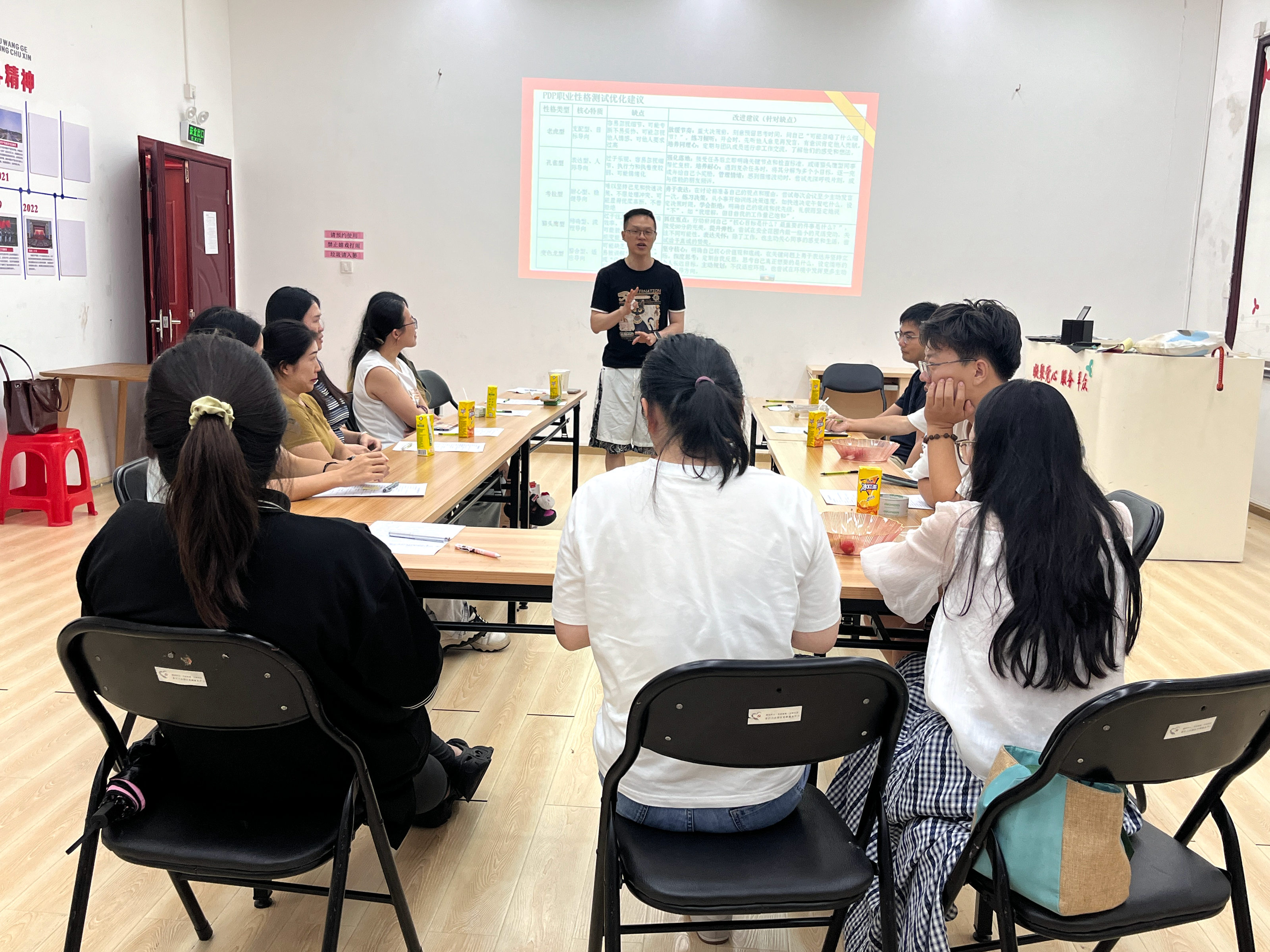 活动以“动物喻性格”互动环节切入,有的职工将自己定位为“兔子型”,突出工作中的敏捷主动,有的则以“树懒型”自喻,展现细致沉稳的处事态度,还有职工用“狸花猫型”形容灵活应变的工作特点。职工们围坐分享,在轻松交流中拉近距离。分享结束后,职工们填写PDP职业性格测试问卷,借助科学工具解锁自我认知新维度。测试结果呈现出五种典型职业性格特征,不少职工表示,测试结果虽与初步认知存在差异,但精准契合工作表现,有助于自己有效帮助梳理优势、认清短板。根据测试结果,职工围绕“扬长避短”主题展开深度研讨,通过集体智慧碰撞,每位职工都找到突破成长瓶颈的具体路径,实现“一人困惑,众人解局”的互助效果。