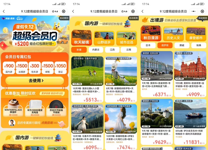 值得一提的是,同程旅行平台9月的出境线路热度增长也较为明显,日本、俄罗斯、挪威、希腊、埃及、德国、新加坡、英国等是比较受欢迎的出境目的地。出游价格相比暑期和国庆也更为划算。