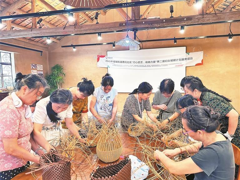 近日,在茜坑社区老村“亲邻里”暖黄色的灯光下,一根根藤条在社区妇女们的巧手中上下翻飞,渐渐“生长”成藤条背包、面包框等兼具实用与美感的物件。这场看似普通的编织赋能课堂,是茜坑社区妇女赋能民微项目的生动实践,不仅为社区妇女打开了自我成长的新窗口,更成为撬动社区治理效能提升的重要支点。