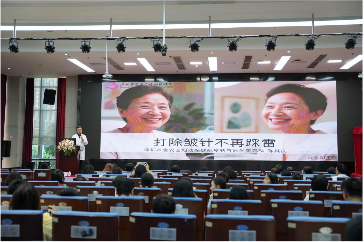 揭牌仪式后,“打除皱针不再踩雷”专题讲座如期开讲。宝安区妇幼保健院皮肤科主任医生陈其庆结合真实案例,拆解除皱针注射的“风险点”,如“非法机构注射导致面瘫”“过期产品引发感染”等,并给出相关建议,参会人员认真聆听,不时举手提问,互动氛围热烈。