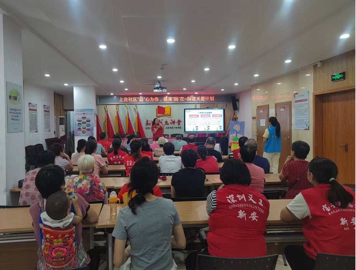 为提高社区居民对肠道健康的重视程度,普及肠道健康知识,9月11日下午,新安街道上合社区党群服务中心开展了“‘益’心为你,健康‘肠’在——肠道关爱计划”活动。活动吸引了40余位社区居民参与,现场氛围热烈。
