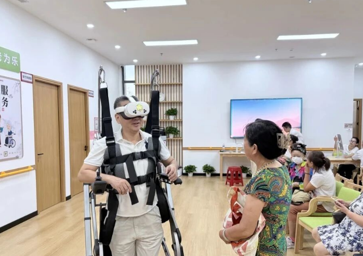 而针对长者们常见的腿脚不便问题,“帮你迈步”计划则带来了全新且充满乐趣的沉浸式康复体验。长者们戴上VR眼镜,手握扶栏,在机器辅助下“爬”起了虚拟高山。现场欢声笑语不断,一位刚体验完的阿姨高兴地说:“爬了一辈子山,没想到老了还能这样‘登高’!”