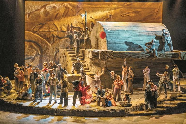 舞台上多次出现的大型“石碾”装置,既是农家日常工具,也象征“时代的碾压”,是一种隐喻性的设计亮点,与石碾融为一体的还有山坡、乡间小路和窑洞,连同极具地方质感的道具布设整体充分还原了陕北高原的风情地貌。