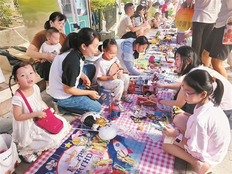 在融域名城小区,文艺汇演堪称“重头戏”,社区居民自编自导自演的舞蹈、歌唱等节目轮番登场,精彩绝伦的表演赢得阵阵掌声,观众纷纷拿起手机记录美好瞬间。跳蚤市场同样人气爆棚,孩子们带着玩具、书籍、手工艺品等 “摆摊”,在交易中学会沟通分享。现场还设置“人民建议在身边”和“妇女儿童心理关爱”专属摊位。在“人民建议在身边”摊位前,工作人员耐心倾听居民关于小区环境、设施维护等方面的意见与建议,现场收集了20条“金点子”,为小区精细化治理提供参考。