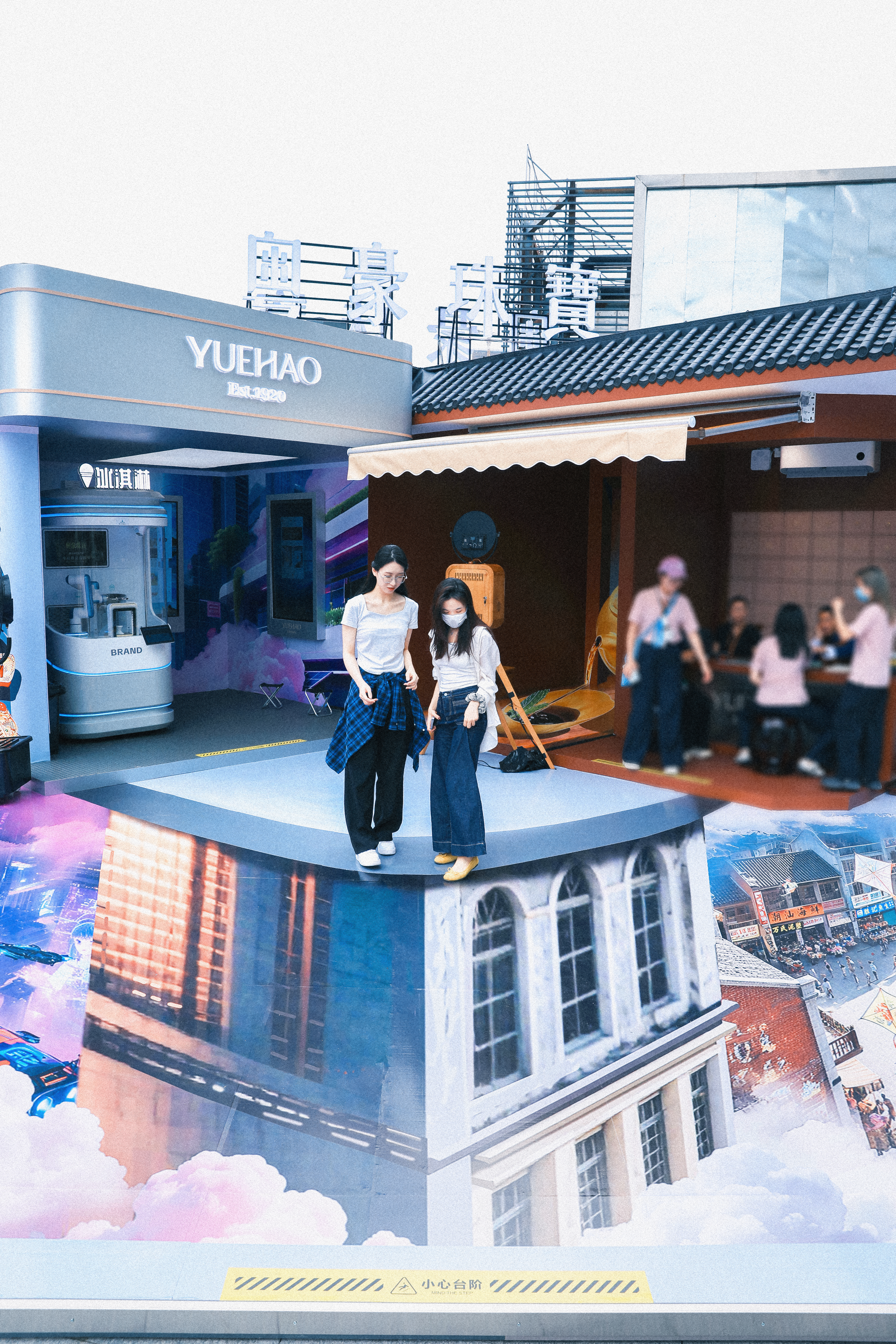 尤要一提的是,粤豪还首创了深圳水贝珠宝圈3D快闪艺术空间,特邀中国首对3D地画艺术家“万氏兄弟”操刀,构建了一场跨越世纪的时空对话。在这个充满想象力的空间里,市民可以打卡从1920年的泰昌银楼街巷到2120年的赛博未来世界,体验复古养生摊位,品尝赛博风格冰淇淋,并通过拍照打印记录下每一个幸福瞬间。