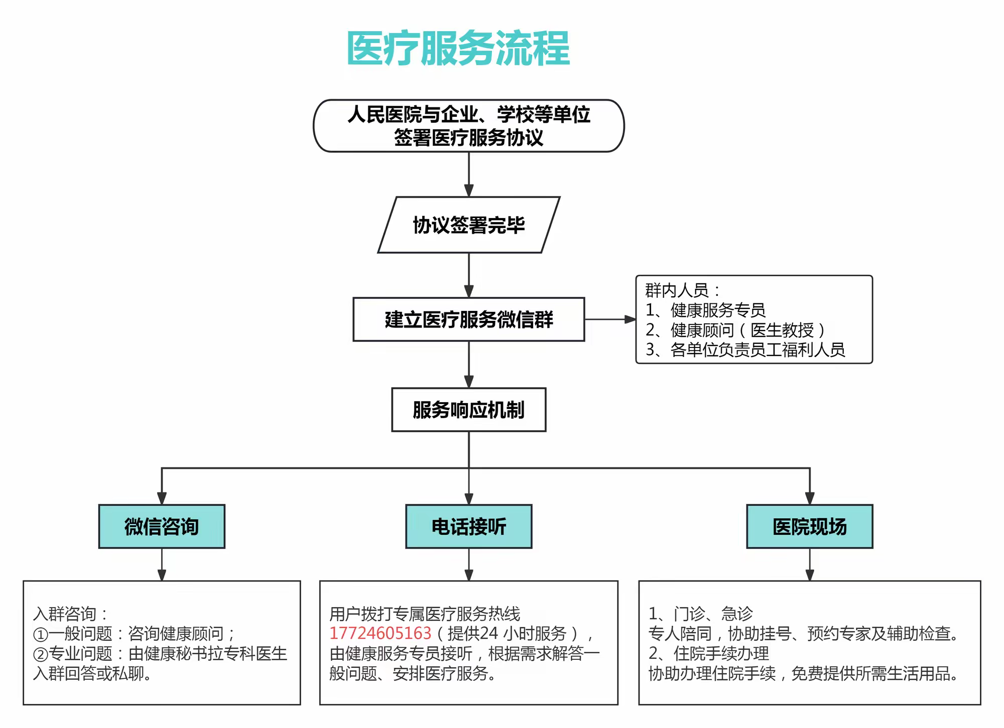 一条热线,全天候响应:设立24小时医疗服务专线(17724605163),提供健康咨询、预约挂号、就医指引等一站式支持,确保医疗需求及时响应。