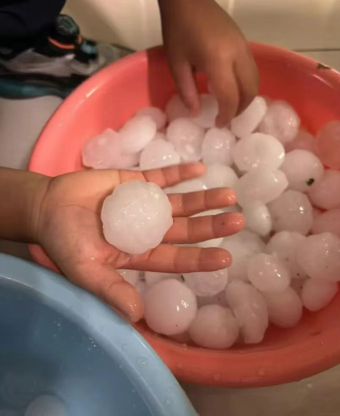 冰雹威力不可小觑,及时关注最新预警信息,收到冰雹预警后应尽量避免外出,遭遇冰雹应在确保安全的情况下避险。