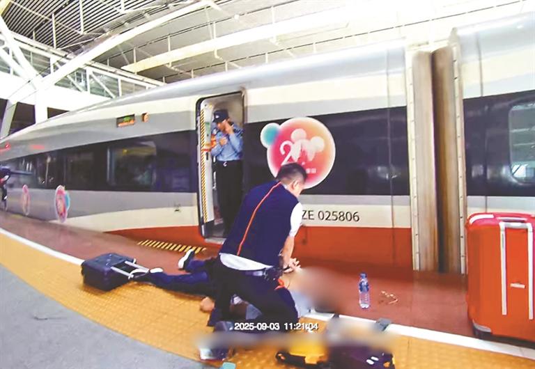 9月3日上午,深圳北站内,一场惊心动魄的生死救援牵动着众人的心。一名拖着行李箱的六旬外籍男子,在准备乘坐G5631次深圳至香港西九龙的高铁列车时,毫无征兆地在6号车厢站台处晕倒。情况万分危急,一场由深港两地工作人员接力的救援行动迅速展开。
