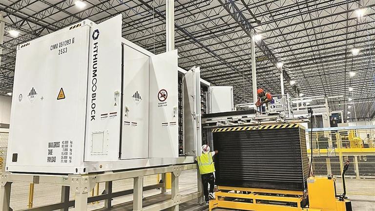 在位于三一云都的海辰储能,该公司控制技术研究院院长管伟拿起了一块一本书大小的蓝色电芯对记者说:“这块电芯里,存有1度电,把它装进一个外置的系统中,就是我们海辰储能的主打产品——长时储能专用电池,它可以满足非洲许多国家家庭日常用电需求。这款产品的使用寿命是20年,插上光伏板就可以为电池充电,在亚非拉国家非常受欢迎!”