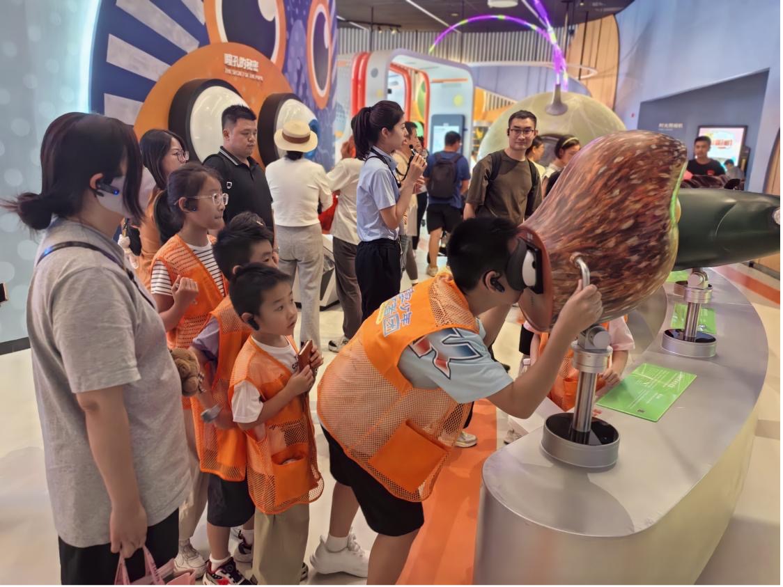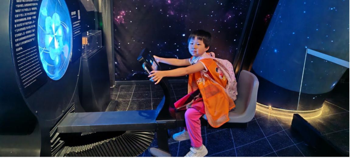 球幕影院观影结束后,宝安日报特意为小记者们安排了1个半小时的自由活动时间,以便小记者们对此次研学之旅中感兴趣的科创项目进行“补习式”了解与体验。