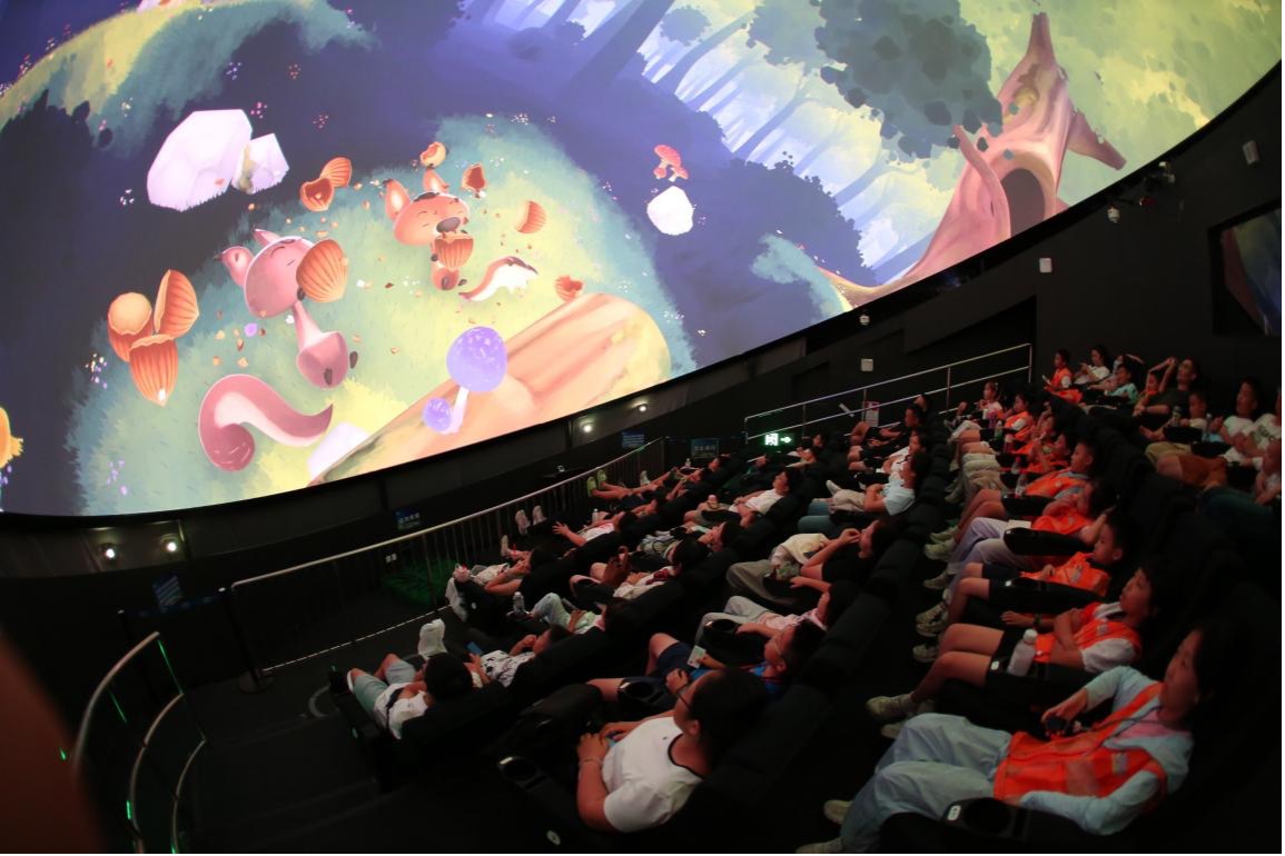 8月9日,位于深圳科学技术馆6楼的天象厅(球幕影院)正式对外开放。此次研学,宝安日报为每位小记者赠送了球幕影院观影环节。小记者们通过《榛果星球》这部电影,化身“星空探险家”,解锁“把宇宙搬进室内”的沉浸式探索之旅。
