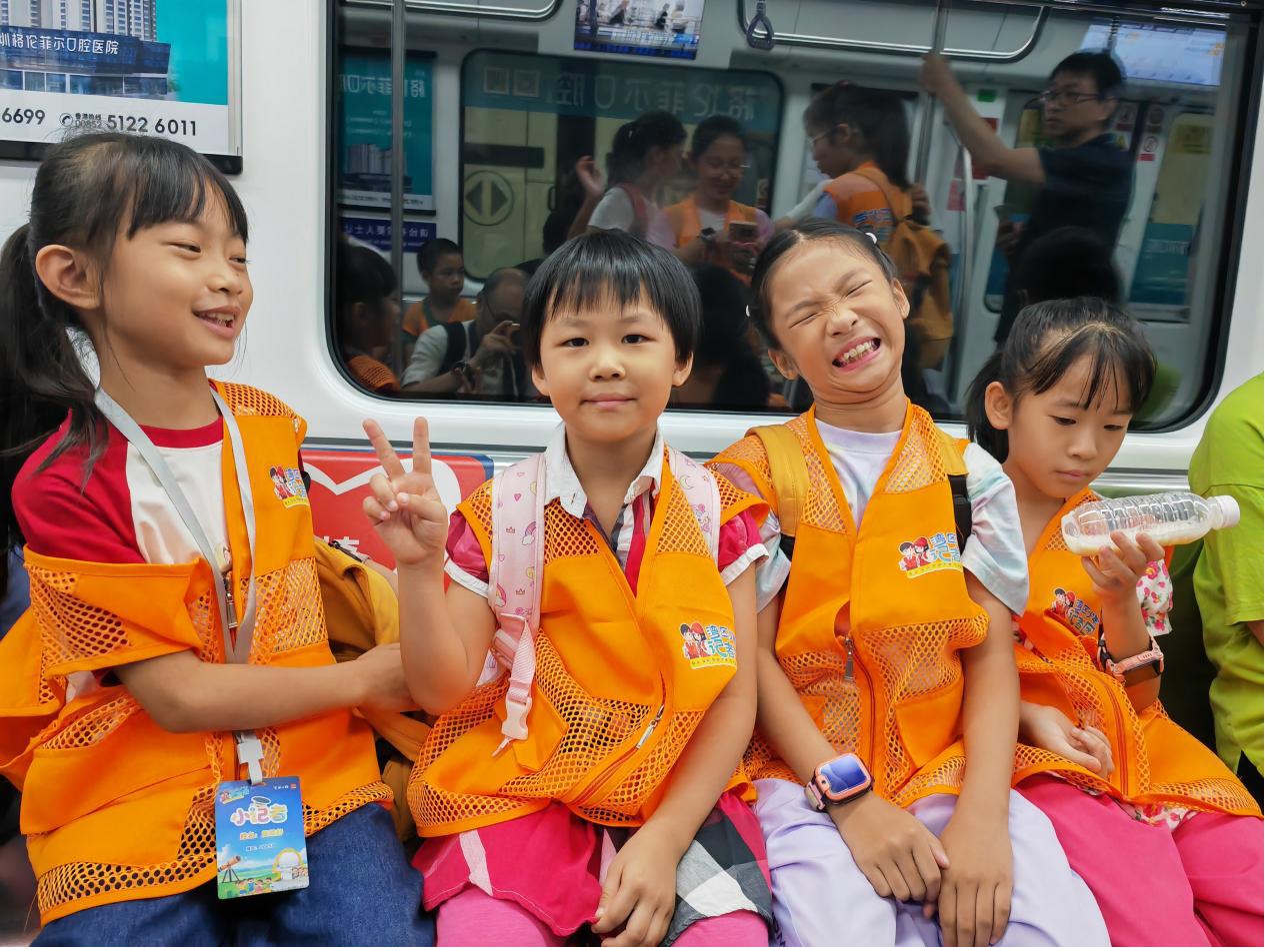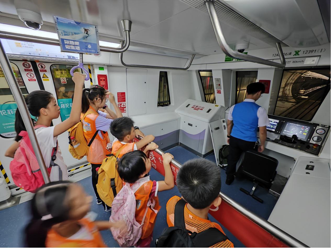 13日和14日,早上8点,湾区少年小记者们在宝安日报集合后,统一乘坐地铁绿色出行。大家从地铁12号线流塘站上车,当带队记者告诉小记者们,深圳地铁12号线是无人驾驶地铁时,大家不约而同赶往车头,争睹无人驾驶之神奇。