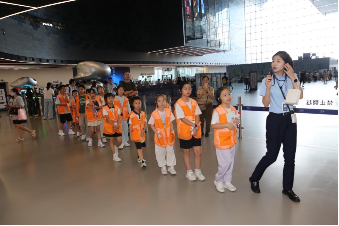 在专业讲解员的带领下,小记者们从二楼开始逐层往上,踏上一场目不暇接的科创之旅——