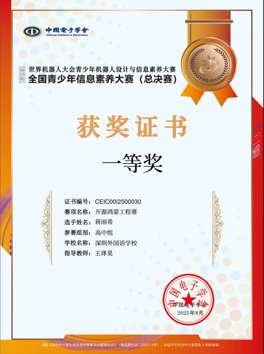 蒋雨希的夺冠,是深外“科技+人文”双轨教育的生动缩影。学校长期通过科创社团、跨学科项目式学习,培育学生解决复杂问题的能力。正如蒋雨希所说:“深外给了我接触前沿技术的平台,让我有机会把‘科创报国’的理想变成实践。”