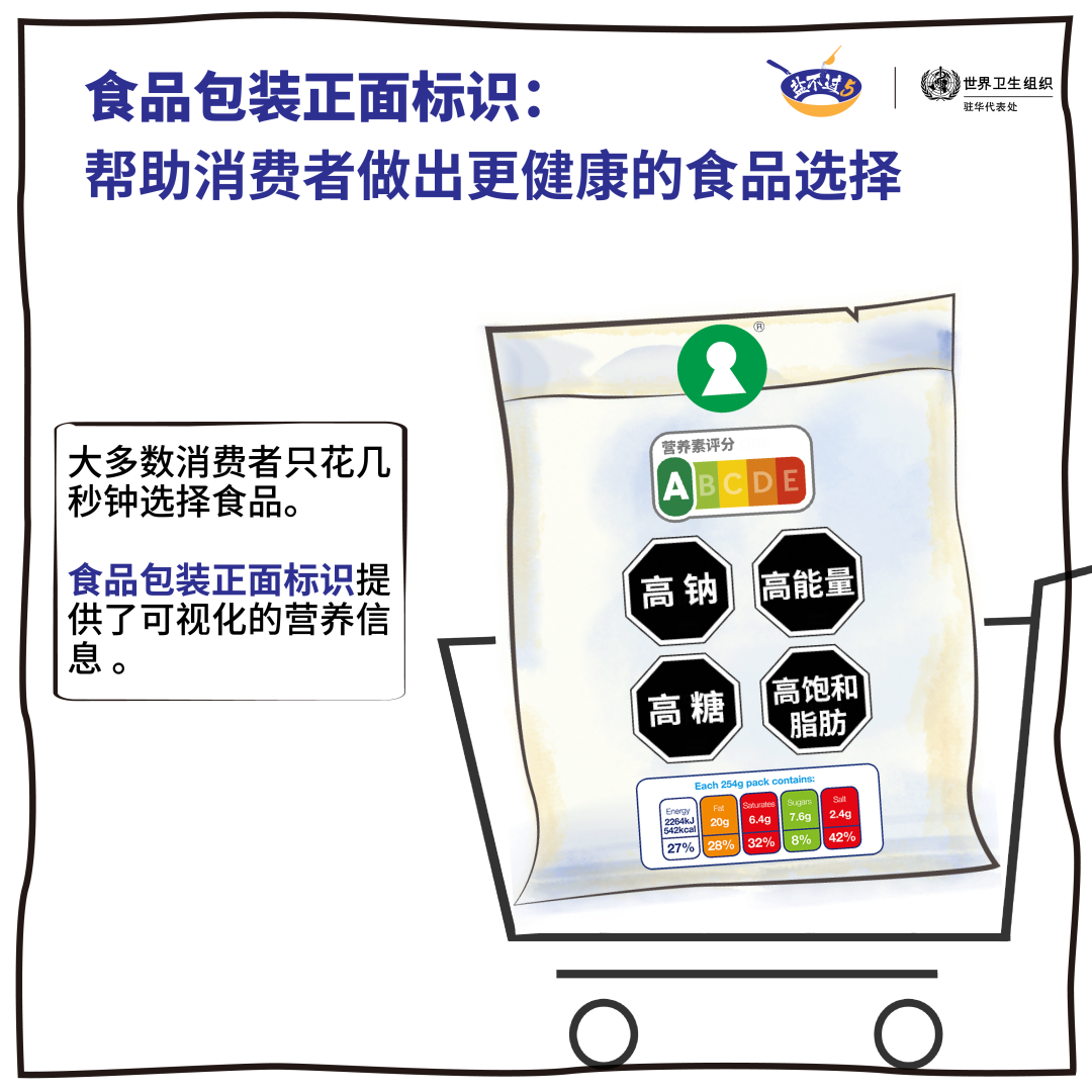 目前,全球有超过40个国家已经实施了不同形式的 “食品包装正面标识” 。这一营养标签体系作为世卫组织应对慢性非传染性疾病的一项最合算措施,被证明可以有效促进消费者选择更健康的食品。同时,“食品包装正面标识”还可以激励生产企业对产品配方进行改良,如逐步降低食品中的盐、脂肪和糖的含量,并提升食品健康程度。而这种配方改良也能带来人群层面积极的饮食变化。