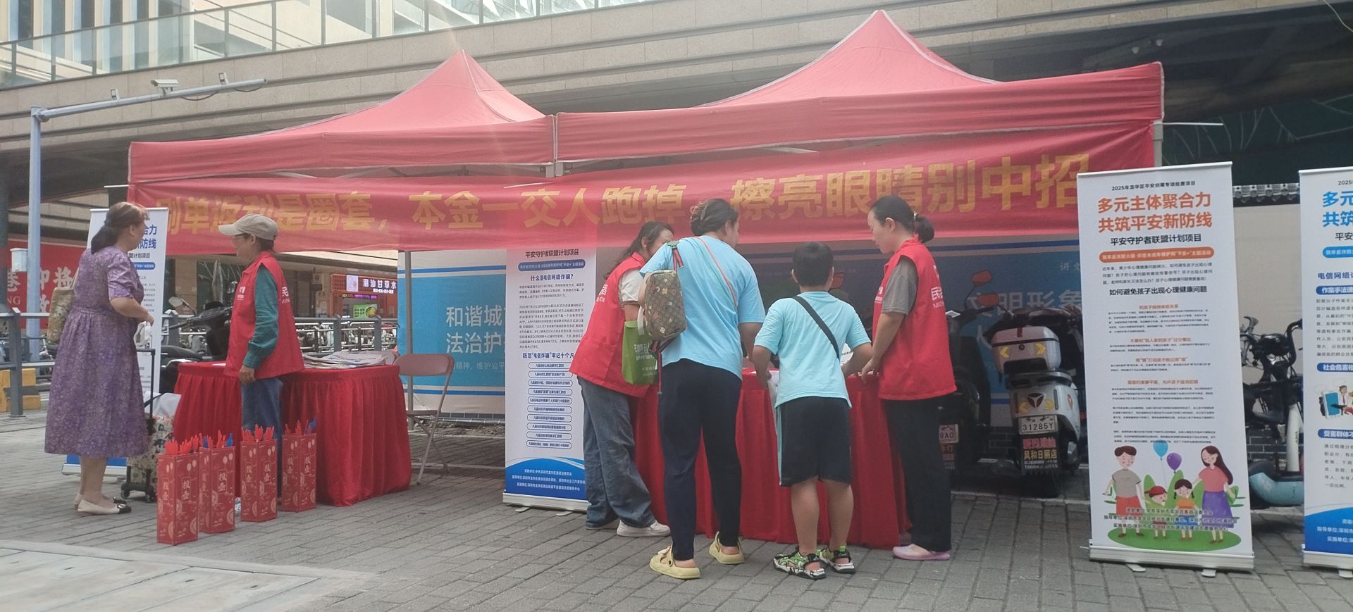 9月13日,由龙华区委政法委员会资助,龙华区民治街道和深圳市社会工作者协会共同指导,民治街道平安建设志愿服务中心主办的“平安+”平安主题活动在红山地铁口开展。活动以“反诈普法、未成年人保护”为主题,通过多元化的宣传形式,吸引了100余名社区居民积极参与。