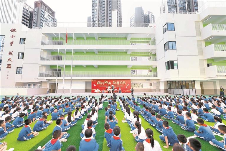 这是9月1日狮山校区开学的一幕。当天,深圳科学技术馆为狮山校区的学生们送上“科普进校园·开学第一课”,将“深圳星”发现50周年天文科普展送进学校,用“火焰掌”“液氮大爆炸”等科普活动,点燃近700名小学生的科学梦想。