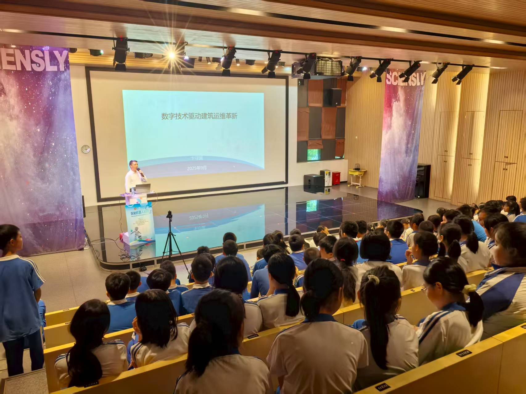 在互动环节中,现场气氛热烈。师生们踊跃提问,有学生好奇数字技术在未来建筑中的应用方向,有老师关注如何将数字运维理念融入学校教学管理。卞守国耐心解答,用通俗语言和生动比喻,让师生们对数字技术有了更清晰的认识。