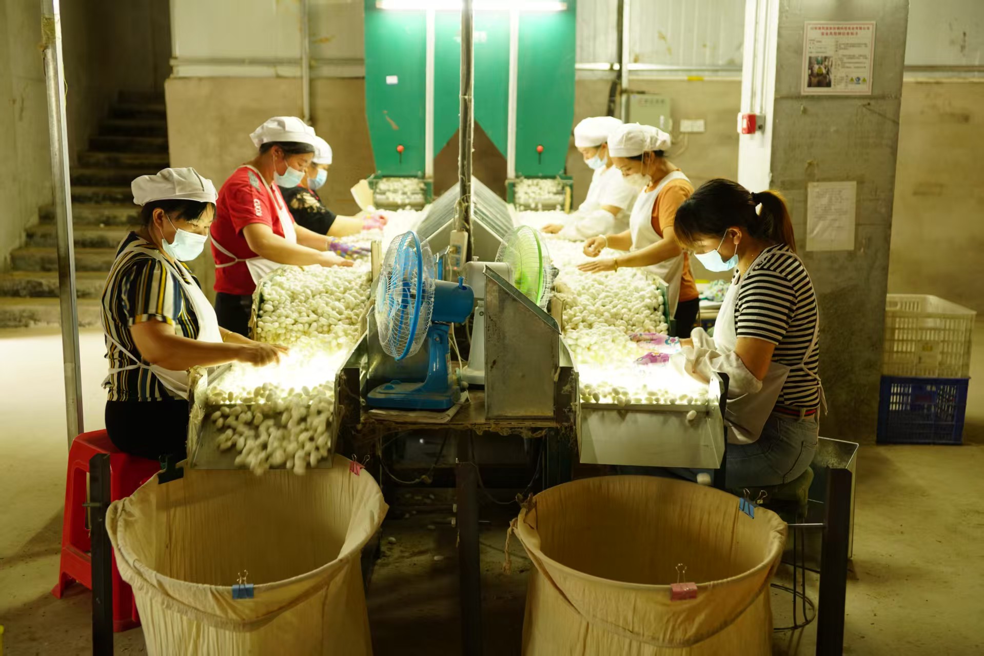 在那坡,传统的桑蚕产业焕发新生。通过引进深圳同益新公司,龙岗区投入帮扶资金打造茧丝绸现代农业产业园,推动蚕桑生产走向规模化、标准化、品牌化。公司采取“村集体入股分红”模式,带动2000余户万余农民增收。2024年,首批春茧上市,蚕农喜悦收获“第一桶金”;入股村集体也获得可观分红,实现了产业增效、集体增资、农民增收的多赢局面。