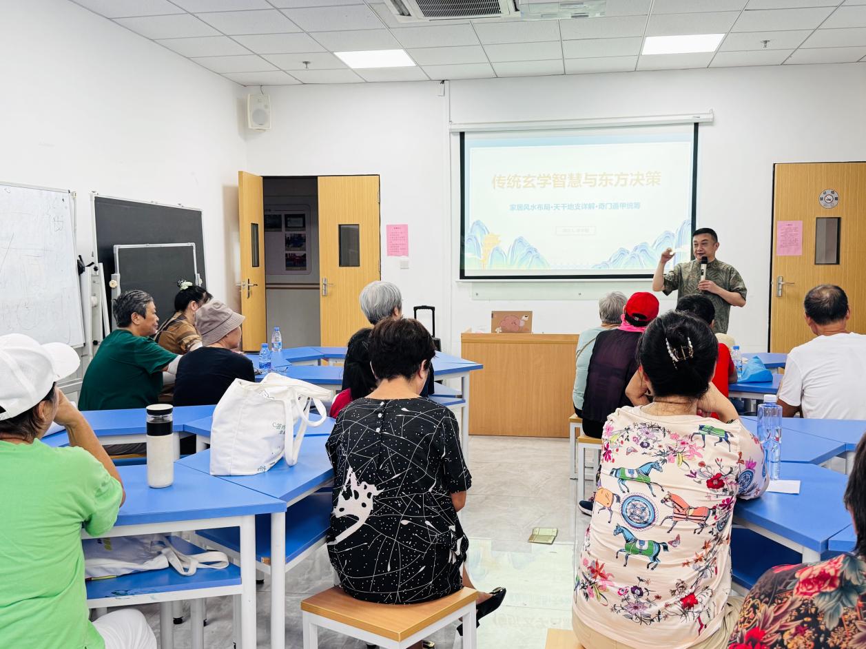 近日,南山区西丽街道高铁新城社区长青老龄大学2025年秋季学期首次公共课——“传统文化与家居规划”在社区党群服务中心二楼教室温馨开讲。本次课程特邀长期致力于国学文化传播与实践的资深易学教师陈华聪授课,吸引了30名社区长者踊跃参与,共同体验传统文化与现代生活相融合的智慧课程。