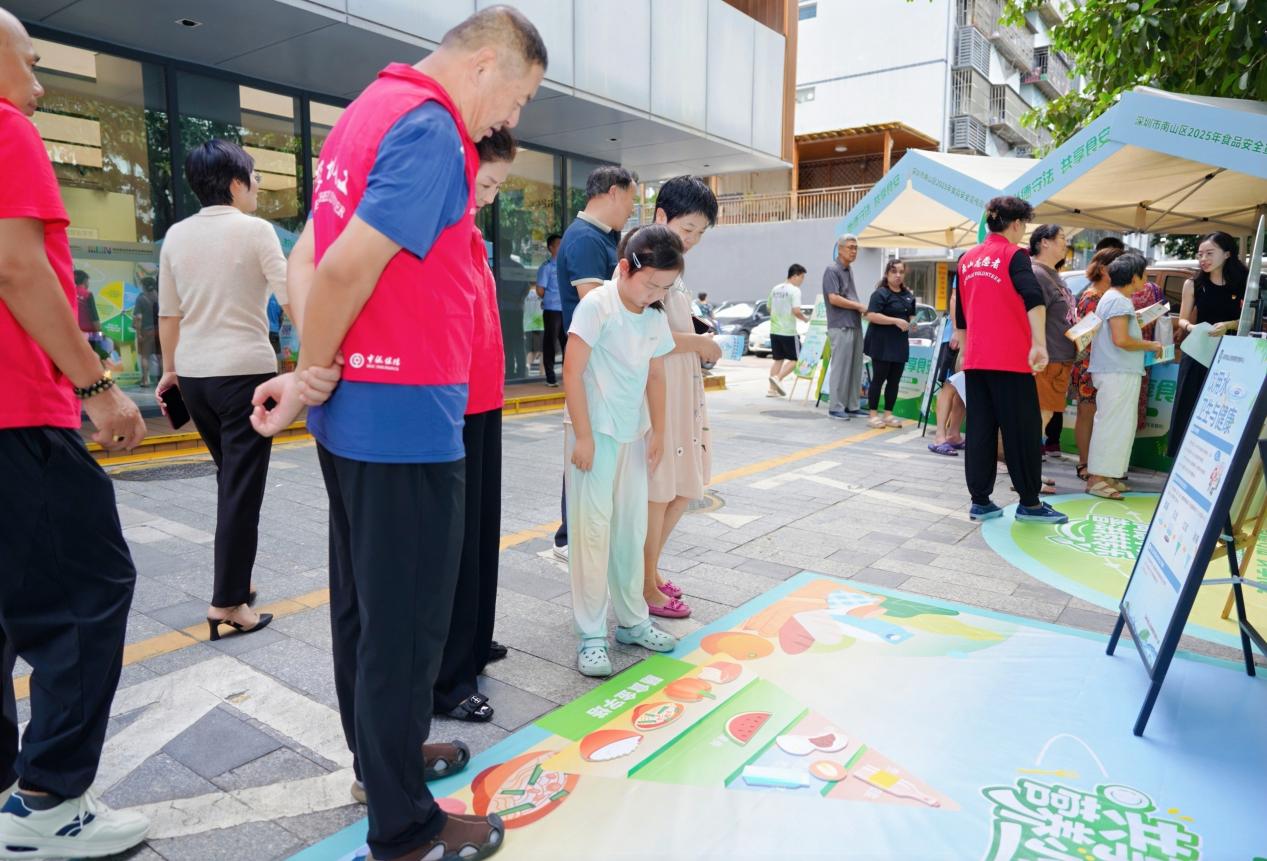 南山区疾控中心的党员干部们也来到现场,他们穿着统一的工作服,时而耐心解答居民疑问,时而蹲下身来和孩子们一起拼图。南山区疾控中心(区卫生监督所)组织党员干部深入基层一线,既当科普宣讲员,又做民情收集者。党员们不仅耐心解答居民关于食品选购、储存等方面的疑问,还认真记录群众反映的食品安全隐患,建立起民情回应闭环机制。“和居民面对面交流,能更直接地了解大家关心的食品安全问题。”正在给居民讲解食品安全知识的党员说道。
