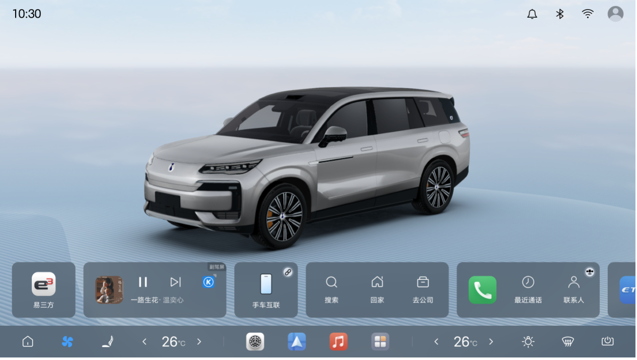 当下,智能化高速发展,2026款腾势N9持续进化,升级全新智能座舱UI界面,新增时光桌面、3/7分屏等功能,用户还能自由添加偏好应用。腾势N9具备手机NFC车钥匙、UWB车钥匙等全场景数字钥匙,并拥有手车互联等功能,支持全球主流手机品牌。