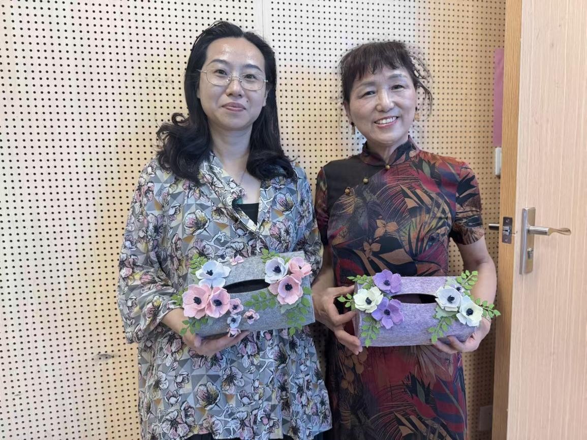 活动现场气氛热烈。在老师指导下,学员们通过材料认知、裁剪拼接、装饰等步骤精心制作。大家互帮互助,在轻松愉快的氛围中锻炼了手脑协调能力,体验到了手工创作的乐趣和成就感。