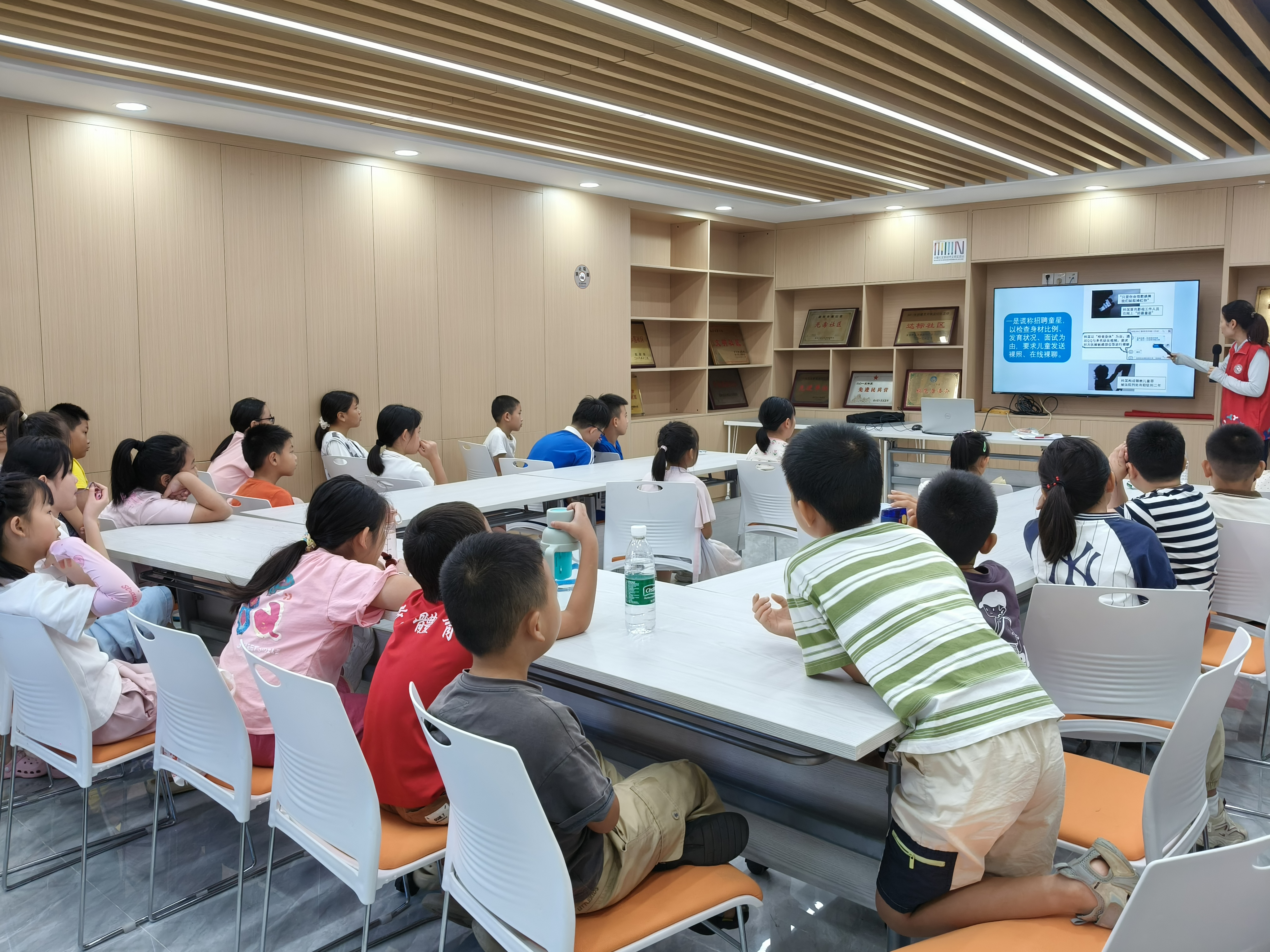 活动紧扣国家网络安全宣传周主题,通过“网络网格”破冰游戏迅速活跃气氛。工作人员引导孩子们围绕“网络的利与弊”展开讨论,结合动画视频和真实案例,生动揭示网络交友中的常见欺诈手段。