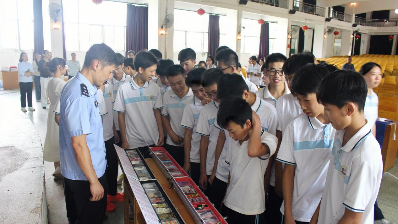 活动在河源市东源县船塘中学大礼堂举行,由“追光”禁毒团队民警付莹雪主持,通过微剧场表演、互动游戏、专题宣讲、毒品仿真模型展示和禁毒知识展架讲解等形式,层层递进、深入浅出地向同学们揭示毒品的危害性与隐蔽性。