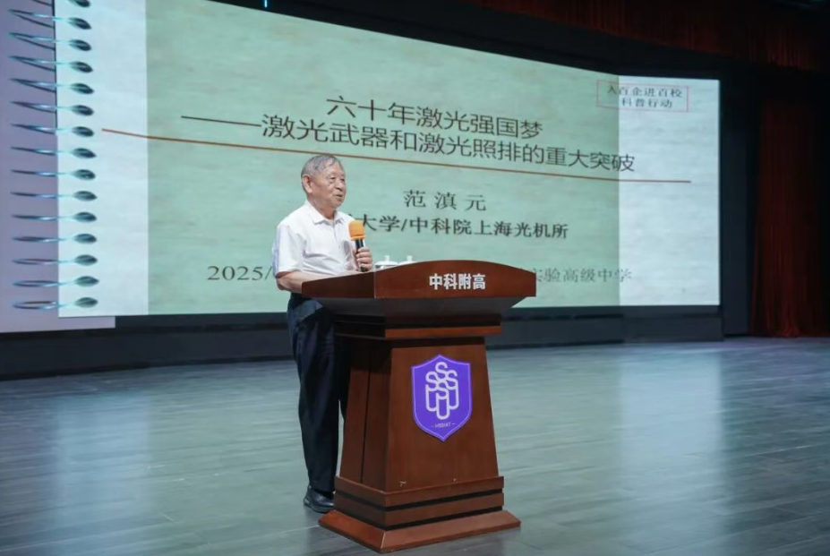 近日,2025“科学与中国——千名院士·千场科普"湾区行活动在中科附高(深圳理工附中)举行。现场,中国工程院院士、激光与光电子学专家范滇元为全体师生带来了一场题为 《追梦激光六十年》 的精彩科普盛宴。