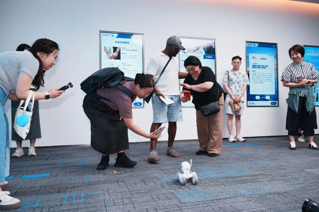 “露娜,快来!” 一位来访记者俯下身,对眼前的宠物机器狗发出指令。机器狗立刻摇晃着 “耳朵”,憨态可掬地朝记者小跑而去,周围响起一片快门声和惊叹声。这不是科技展会,而是9月18日下午发生在南山区全球服务中心的一幕。