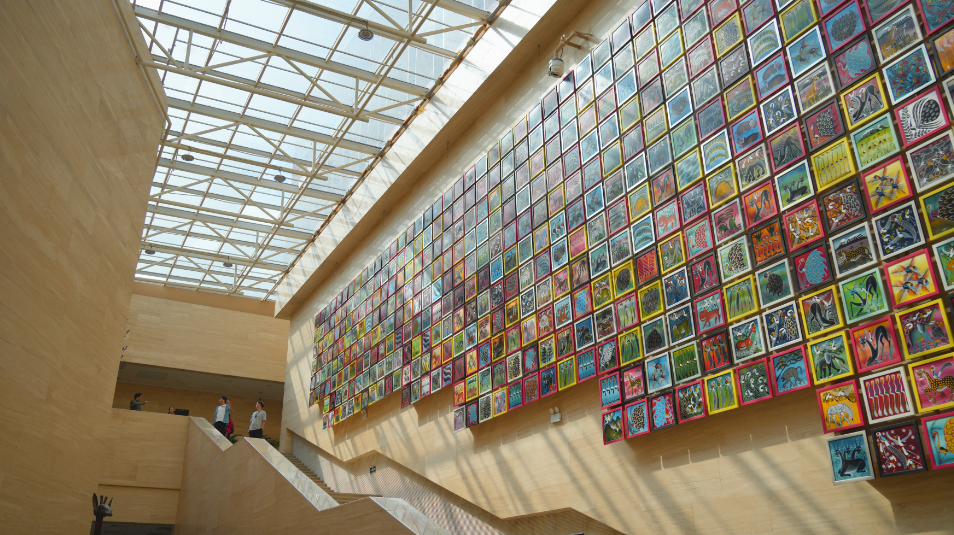 在“艺术非洲”展厅,一件长达10米的《塞伦盖蒂大草原交响曲》画作吸引众人驻足。这种以自然为灵感、色彩浓烈的绘画风格,与马孔德木雕中“万物有灵”的信仰形成呼应,共同诠释着非洲艺术对生命本质的追问。