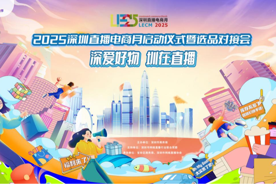 2025深圳直播电商月以“深爱好物,圳在直播”为主题,打造“1+1+N”多元活动矩阵,包括举办1场启动仪式、1场线下选品对接会、N场主题活动及带货活动。围绕“赋能产业·优品直播”“湾区溯源·圳播未来”“直播竞技·电商英才”“跨境联动·播通全球”“万象直播·风尚鹏城”等主题板块,通过打造多元化直播内容与消费场景,全面提升消费者购物体验,进一步激活市场消费潜力。
