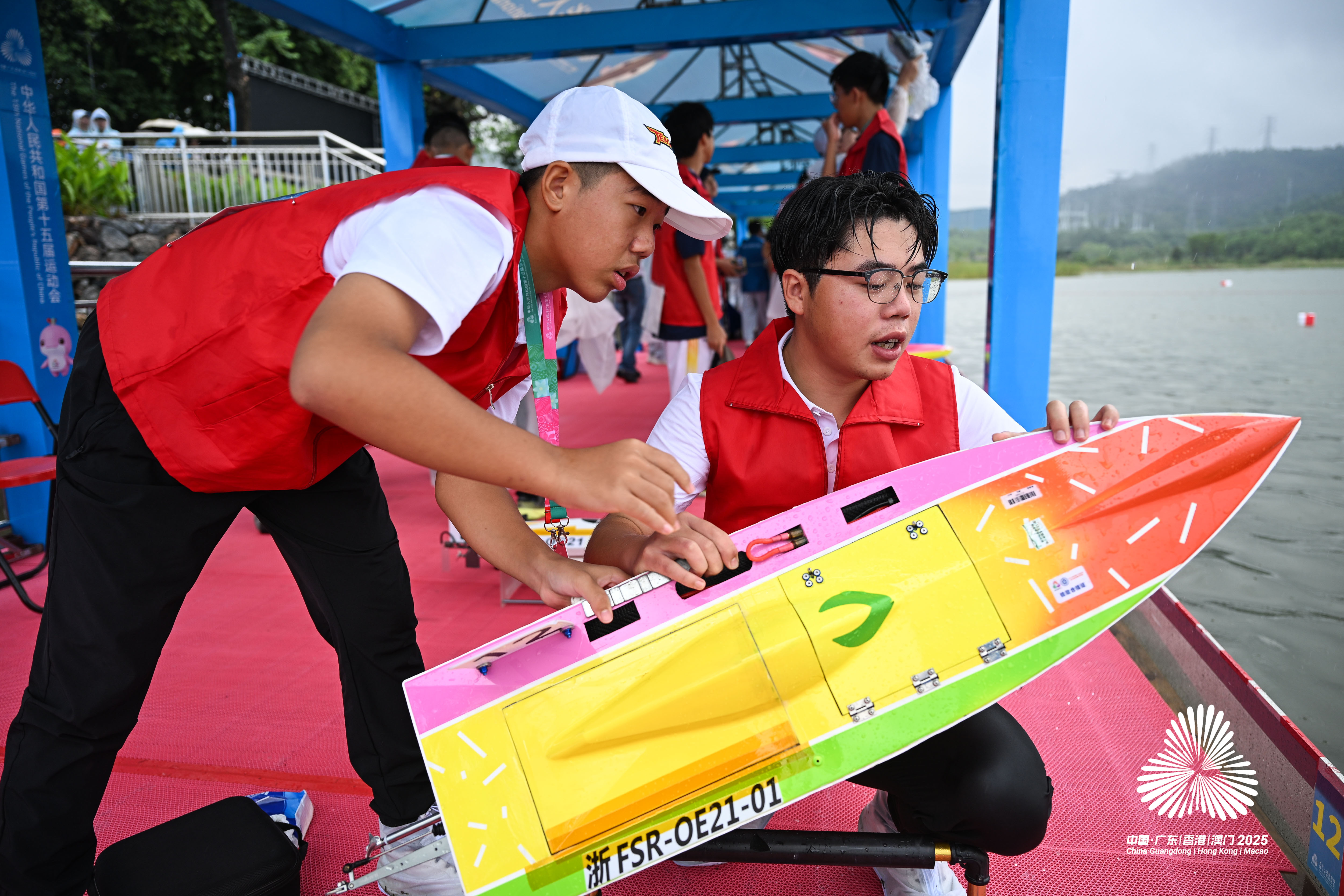 其中,FSR-OE21模型是本届赛事的一大亮点。十五运会群众比赛模型(航海、车辆)项目总裁判长郭常有介绍,该项目是我国近年来创新和推进的科技体育项目,注重船体设计,电动与耐久性能,不仅考验电机的设计与制造水平,也是对电力系统稳定性的综合检验,体现了环保、高效与先进的科技体育理念。